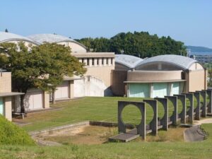 横断歩道を渡ると、美術館の敷地に入る前に、めっちゃかわいい円形のトンネルが登場!🌀 なんか、秘密の入口みたいでドキドキしちゃう!トンネルを抜けて、脇道を少し歩くんだけど、そこにはきれいなサクラの木が🌸 春になったら、絶対もっともっとキレイだろうな~!今から楽しみ!